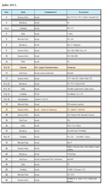 En el Notifat 167, la Federación Argentina de Tiro dio a conocer el calendario de actividades de sus entidades federadas, durante el corriente mes de julio.