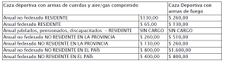 ARTÍCULO 12°.- Dejar establecido el siguiente precio de licencias según el tipo de arma a utilizar: