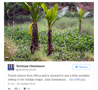 Sin embargo, escondido en la espesa vegetación algo observaba atentamente todos los movimientos de la fotógrafa: un cocodrilo del Nilo, uno de los depredadores más mortales para el hombre. “No fue hasta cuando miré las fotos que noté un ojo, luego me di cuenta que era un cocodrilo. Se me pusieron los pelos de punta, estaba tan cerca de este depredador. Es fantástico cómo pueden esconderse entre la vegetación y convertirse en parte del paisaje “, comentó Sundukova.
