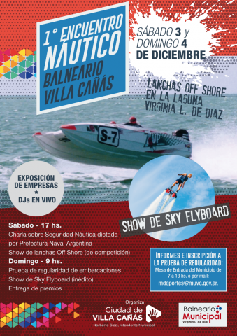 Por primera vez en Villa Cañás y como apertura oficial de la temporada de verano 2016-17 del Balneario Municipal “Virginia L. de Díaz”, se realizará un evento náutico durante el sábado 3 y el domingo 4 de diciembre, que la Secretaría de Turismo de la Provincia de Santa Fe declaró de interés turístico provincial..